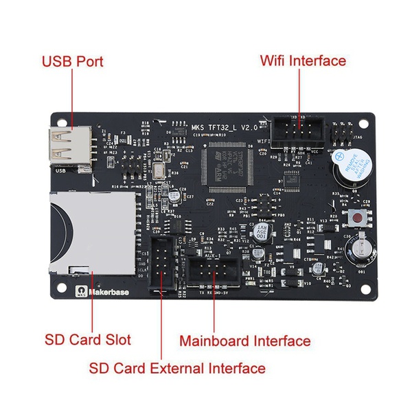 If you like it,then just start ! Features: 3.2 inch colorful touch screen, support U disk and SD card. Support continual and easy software update, support MKS Wifi module. No need to adjust firmware, support Marlin, Smoothieware and Repetier. Support keeping printing and saving of outage. Also exhausted material detection. Support boot logo and button customization, support user define function button. Suitable for many main board, such as MKS BASE, MKS GEN, MKS MINI, MKS SBASE, etc. Specification: Dimensions: 110 * 65mm Hole Size: 102 * 57mm Color Touch Screen: 3.2 inch Microprocessor: 32-bit STM32 processor Update Method: SD file update Support Storage System: SD card, U disk Supported File Formats: Gcode Package Weight: 110g How to connect to MKS Base,MKS Mini: Boot Setting Step1: turn on MKS TFT32 at first time, then enter -> setting -> connection, select baud rate that the firmware use. Step2: enter -> setting ->model, choose printer type, only Delta and other two options. Others: enter -> setting -> touch screen correction, improving accuracy. Firmware Update Copy the latest update firmware to SD card root directory, including: 1. mkstft32.bin. 2. mks_config.txt. 3. mks_pic. Please do not adjust the file name. Insert SD card, it will update automatically after restarts. WIFI Connection 1. MKS TFT can support MKS WIFI module. 2. After MKS TFT works with MKS WIFI module, can use Printrun, Repetier-Host to proceed remote connect and control. But it may make some functions unavailable. mks_config.txt basic configuration 1. Configuration on single and double nozzle : change the value after the colon of "cfg_sprayer_counter" into the nozzle you need.("1"is single nozzle; "2" is double nozzle) 2. Heated bed configuration: change value after the colon of "cfg_custom_bed_flag" into custom requirements you need.("1" is with heated bed; "0" is without heat bed) Package included: 1 x 3.2" Full Color Touch Screen TFT32 LCD Display for MKS 1 x Connection Cable NOTE: This product is a 3.2 inch colorful touch screen. All the modules are NOT included. You will need to buy them separately.