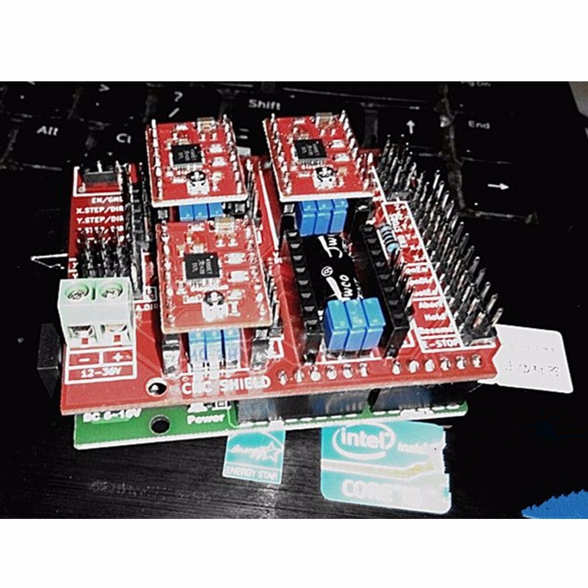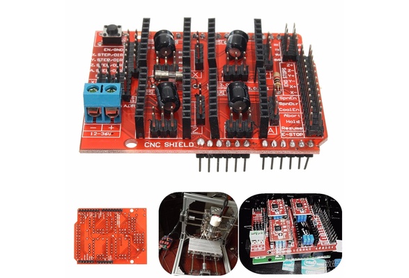 NakÅ‚adka do Arduino pozwalajÄ…ca zbudować moduÅ‚ sterujÄ…cy drukarkÄ… 3D lub innÄ… maszynÄ… CNC. DziÄ™ki czterem złączom dla sterowników silników, np. A4988, uÅ‚atwia korzystanie z silników krokowych. PÅ‚ytka kompatybilna z interpreterem G-code, GRBL. Posiada m.in. wyprowadzone wejÅ›cia kierunku i przesuwu kroków dla czterech sterowniki, wejÅ›cia dla czujników kraÅ„cowych END STOP oraz wyprowadzenia magistrali I2C i UART.