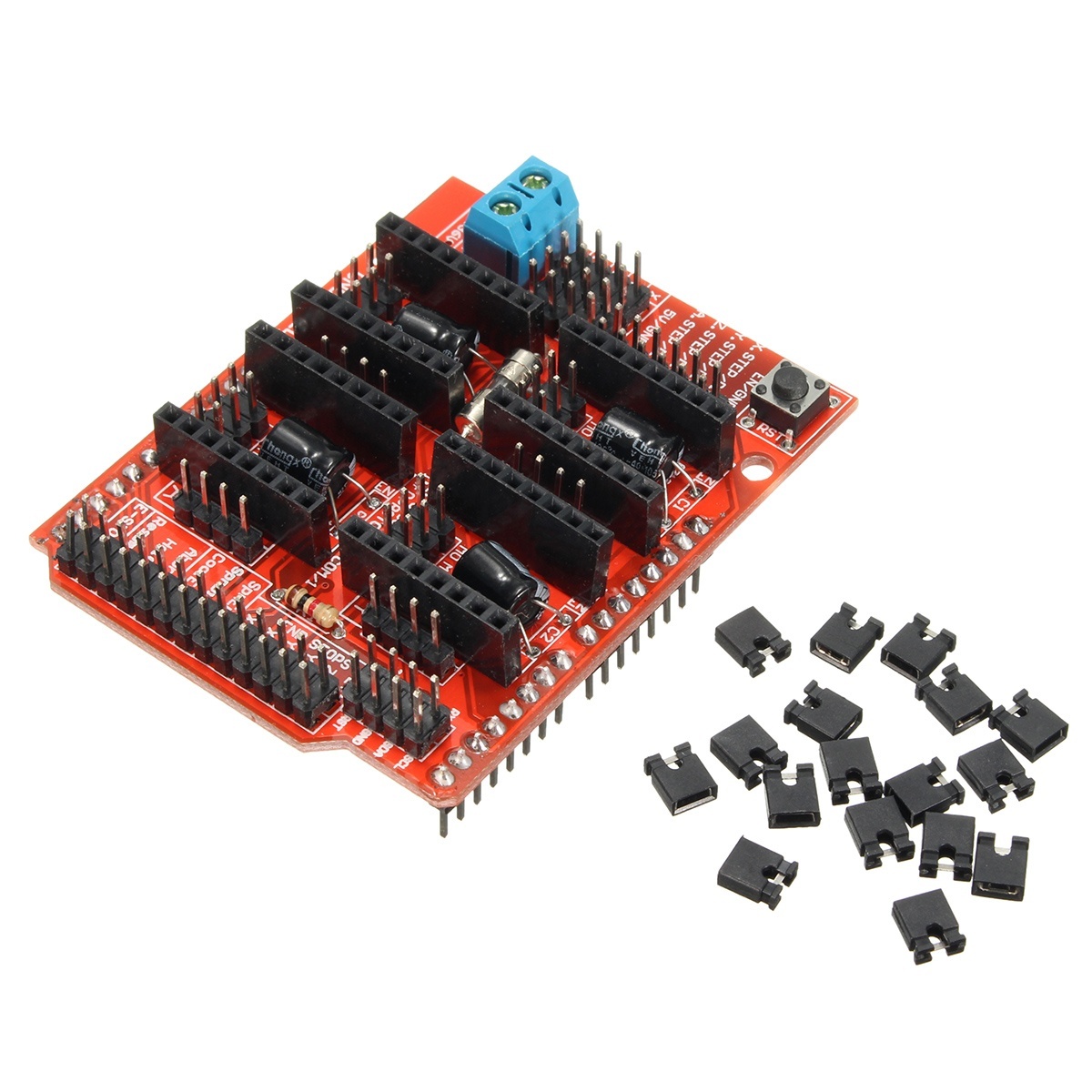 NakÅ‚adka do Arduino pozwalajÄ…ca zbudować moduÅ‚ sterujÄ…cy drukarkÄ… 3D lub innÄ… maszynÄ… CNC. UÅ‚atwia korzystanie z silników krokowych, posiada złącza dla moduÅ‚ów A4988 RepRap.