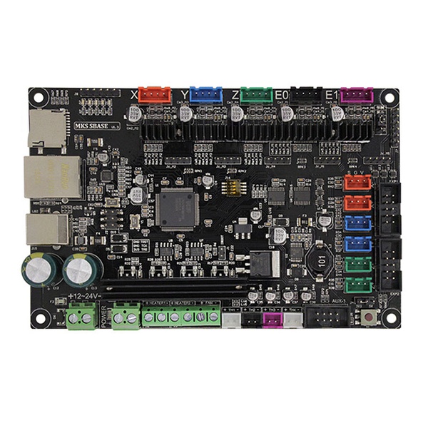 Using 32bit 100M Cortex-M3 MCU-LPC 1768, and improve its performance highly. Support highly modular open source firmware, easy for secondary development. Support network function, then proceed remote control via IE Explorer. Using DRV8825 stepper driver which supports 32-microstep and with excellent cooling. Currents of the stepper motor can be set directly, which can avoid the damage . Using high quality FR-4 4 layers PCB and special design for cooling. Using professional power chip, support 12V-24V DC input. Good to work with LCD12864 and MKS TFT touch screen.(Can't work with MKS MINI12864LCD,OLED12864 and LCD2004 display.) Could be connected to touch-screen MKS TFT28. Net Weight: 130g Material: PCB Colour: Black Dimensions: 146.5 x 95mm Note: Pls confirm whether the positive and negative reversed before powering up again, if the user is due to reverse power and burn, and we do not guarantee such problems. Do not plug in case of power motor drive easily lead to burn do not adjust the current in the motor is running. The correct approach is to first disconnect the power, unplug the motor, and then re-power, adjust potentiometer, measure the voltage on the potentiometer until the measured voltage is the same as expected. MKS Sbase board must be inserted TF card can be used, it must be prepared to TF card, and be careful not to use poor quality TF card. Ancillary products is not including: 4 stepper motor: 42 motor with line Limit switch 3: MKS limit switches Package Included: 1 x MKS SBASE V1.3 32-Bit Controller Panel Board 1 x USB Cable Only the above package content, other products are not included. Note: Light shooting and different displays may cause the color of the item in the picture a little different from the real thing. The measurement allowed error is +/- 1-3cm.