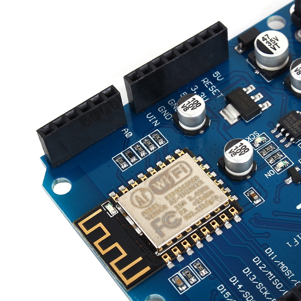 ModuÅ‚ zgodny z Arduino oparty na ukÅ‚adzie WiFi ESP8266. Posiada możliwość połączenia z sieciÄ… bezprzewodowÄ… oraz 11 cyfrowych wejść/wyjść, 10 kanaÅ‚ów PWM, 1 wejÅ›cie analogowe oraz popularne interfejsy komunikacyjne. Ta wersja pracuje z napiÄ™ciem 3,3 V, posiada złącze microUSB do programowania.