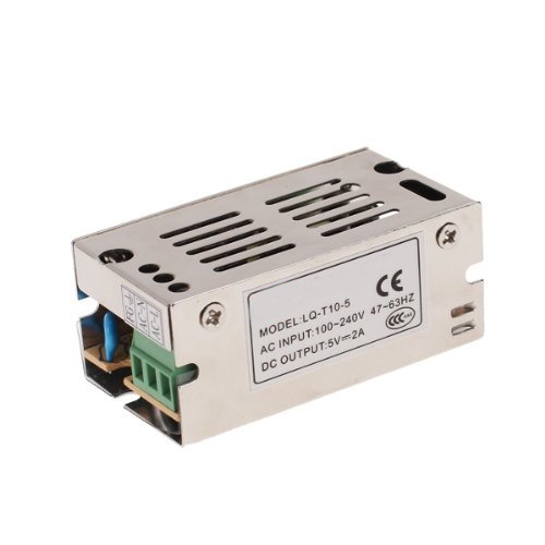 Applications: LED lights, LED strip, low-power audio device, etc Input: AC 110-240V 47-63Hz output: 5V 2A power: 10W Size (L x W x H): Approx 2.8 x 1.5 x 1.2 inch Material: Aluminum package contents: 1x switching power supply