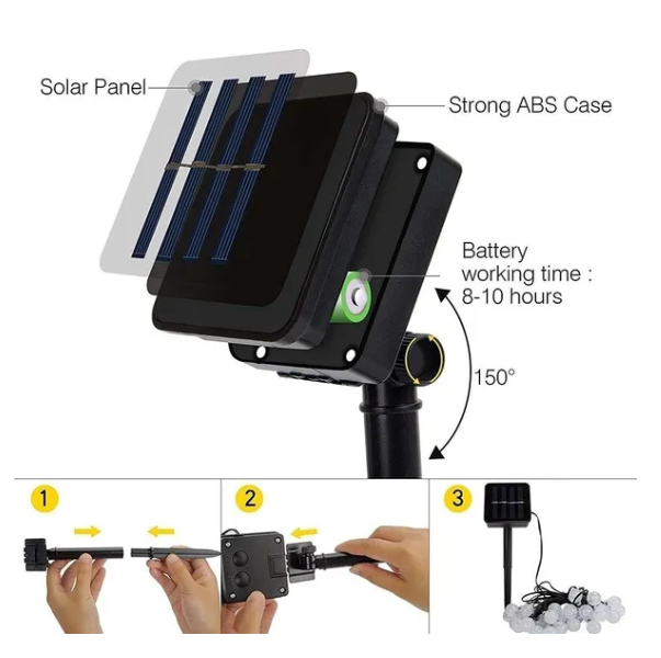 Wasserdichte LED-Kugel für den Außenbereich, solarbetriebene Lichterketten für Hof, Landschaft, Garten, Terrasse, Hochzeit, Party, Urlaub, Halloween, Weihnachtsdekoration