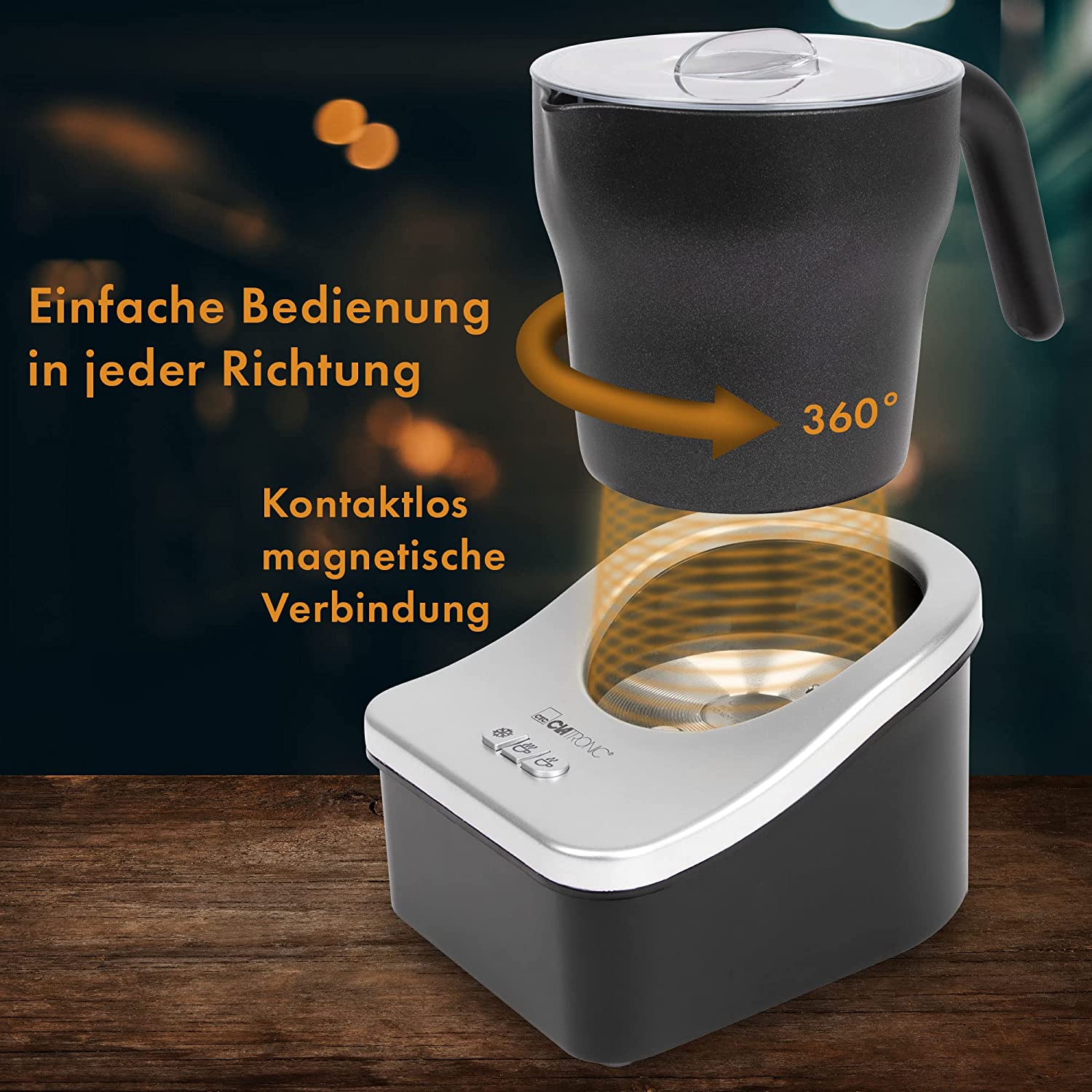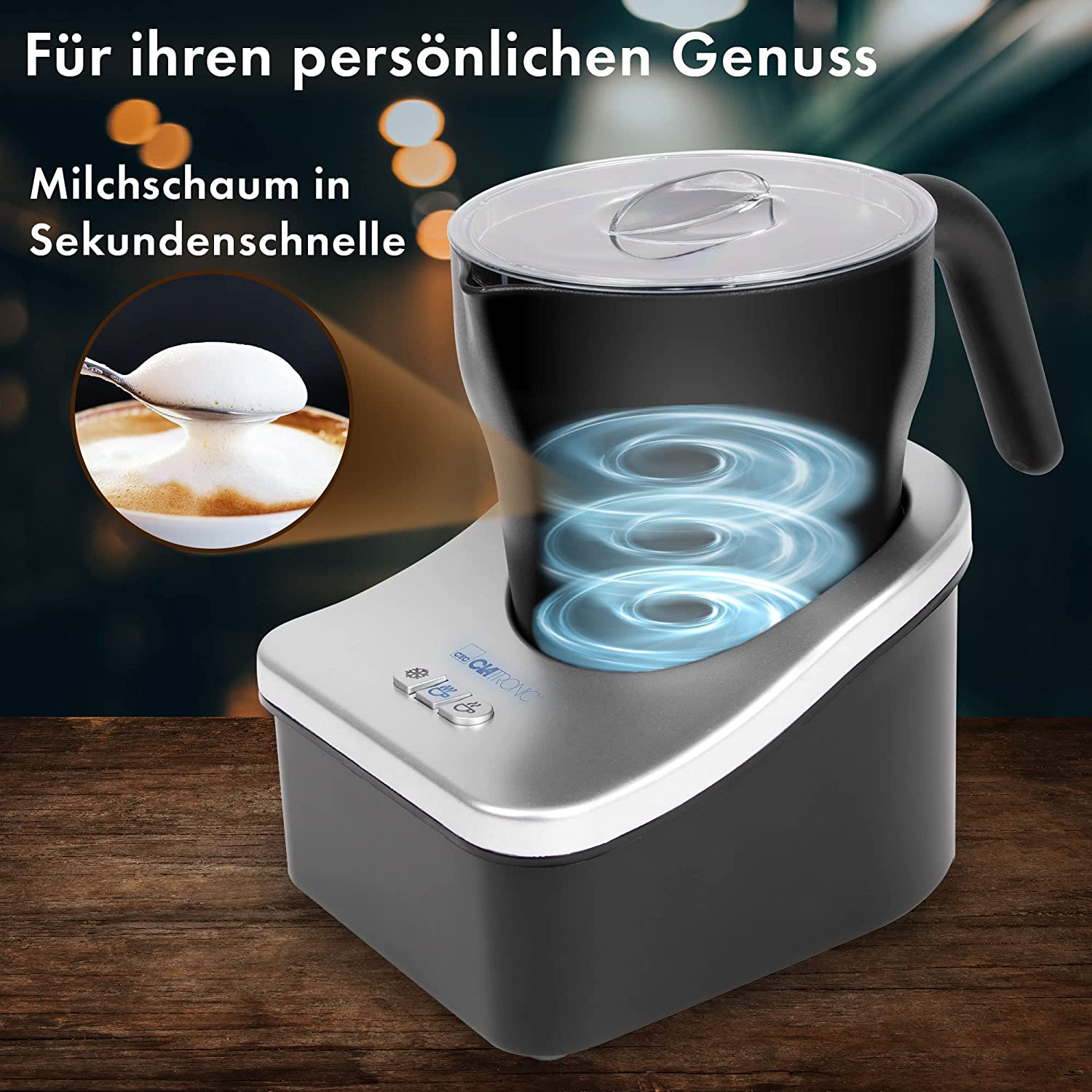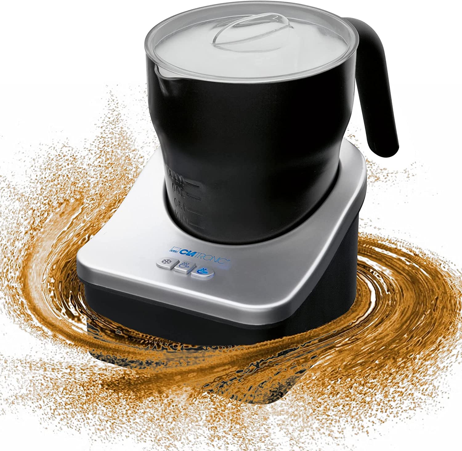 Clatronic Milchaufschäumer, Milchaufschäumer elektrisch für heiße und kalte Milch, Milchschäumer mit 3 Funktionsschaltern, innen u. außen antihaftbeschichtet, Milchschaummenge ca. 500ml, MS 3326