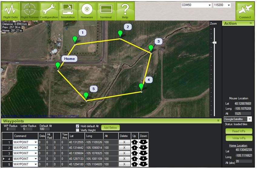 - Najbardziej rozbudowany z programów - Mission Planner, to prawdziwy kombajn, którego główne funkcje to: