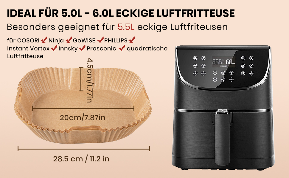Passt perfekt für die meisten Marken 5.5 Liter quadratische Heißluftfritteuse