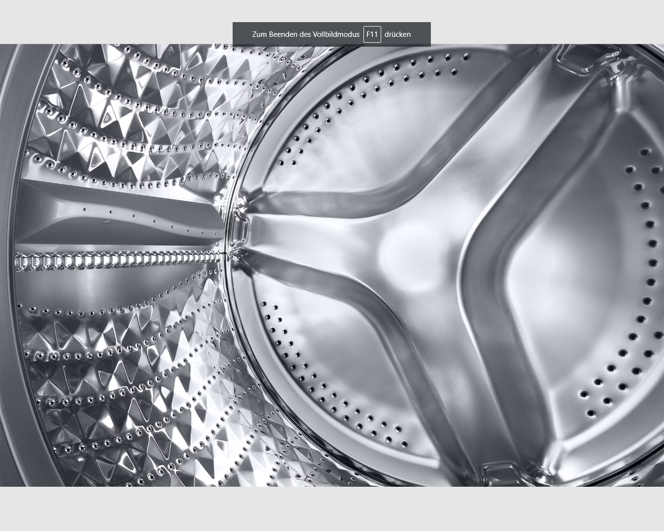 * Entfernt 99.9% der Bakterien aus dem Innenraum der Waschmaschine. Basierend auf Tests des Trommelreinigung-Programms durch Intertek.
