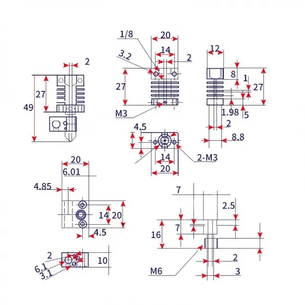 Spezifikationen: Komplett aus industriellem Aluminium, Hitzeschutz aus Titanlegierung, langlebig Passend für viele gängige 3D-Druckermodelle Material: Aluminium Heat Break: Titanlegierung Farbe silber Düse: Messing 0,4 mm Filamentdurchmesser: 1,75 mm Anwendung: Für Ender 3, CR10 Serie Tevo Tornado und viele andere Drucker.