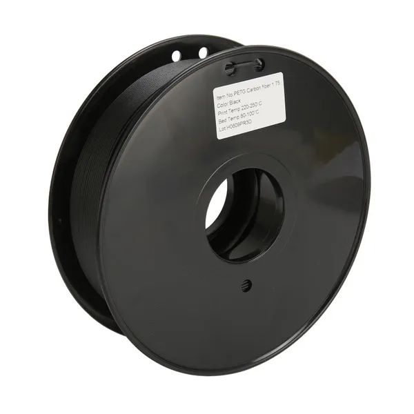 1. Excellent Mechanical Performance: Made of 80% PETG and 20% carbon fiber, resulting in a lightweight, high strength, and material that is resistant to brittleness and deformation. 2. Improved Printability And Matte Finish: The filament's mixture with 20% carbon fiber ensures easy feeding and printing, producing a final print. 3. Wide Compatibility: This filament is designed to work perfectly with a range of for 3D printers, for MK3, for Ender 3, for Monoprice , and more. 4. Application: Lightweight and durable, it is suitable for applications requiring torsional, tensile and impact strength, and is widely used in the robotics, drone, automotive and aerospace industries. 5. Printing Recommendations: , stable printing, the recommended printing temperature: 220°C ‑ 250°C, bed temperature: 80°C ‑ 100°C, fan speed: 0%, printing speed: 40‑130mm/s. Specification: Item Type: Carbon Fiber PETG Filament Material: PETG+Carbon Fiber Color: Black Diameter: 1.75 mm/0.07in +/- 0.02 mm Recommended Printing Temperature: 220°C - 250°C Recommended Bed Temperature: 80°C - 100°C Printing Speed: 40-130mm/s Package List: 1 x Carbon Fiber PETG Filament Note: Due to the addition of carbon fiber, this 1.75mm PETG‑CF filament may quickly wear out and clog a 0.4mm brass nozzle. It is strongly recommended to use a larger diameter (0.6mm or larger) wear resistant steel nozzle and keep the nozzle clean between a few prints. For better finish and layer adhesion, it is also advised to dry the filament before printing.