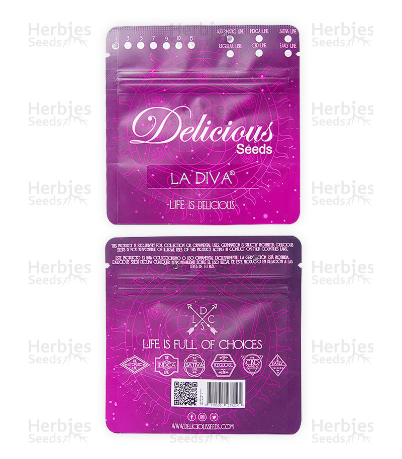 La Diva Auto ist eine wahre Freude, sowohl beim Anbau als auch beim Konsum. Die Pflanze wächst im Grunde in jeder Umgebung, wobei du maximale Ergebnisse erzielst, wenn du sie an ihren endgültigen Platz stellst, bevor sie ganz ausgereift ist. Mit ihren vielen Seitenzweigen und einer robusten Wuchsform liefert die Sorte gute Erträge, die in Innenräumen 300 g/m2 und im Freien 80 g/Pflanze betragen können. In jedem Fall kannst du schon nach nur 6 Wochen mit einer Ernte rechnen, die einen THC-Gehalt von 15% und einen hohen medizinischen Nutzen hat. In wärmeren Klimazonen ist es möglich, 2-3 Mal pro Saison zu ernten.
