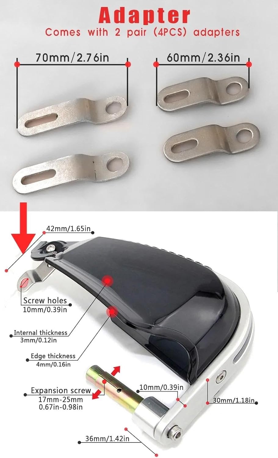 Dieses Produkt kann an der Schnittstelle des Motorradrückspiegels oder am Bremshebel installiert werden. Dieses Produkt ist mit zwei Arten von Verlängerungsadaptern ausgestattet. Kann auf mehr als 95 % aller Motorradmodelle angewendet werden.