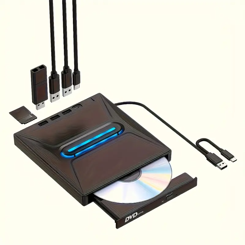 Tragbares USB-C- und USB-3.0-CD-/DVD-Laufwerk VVIA, multifunktionales DVD+/-RW-Brenner, SD-Kartenleser, 3-Port-Hub, Plug & Play für Windows, Linux, Apple OS, kompatibel mit Laptop
